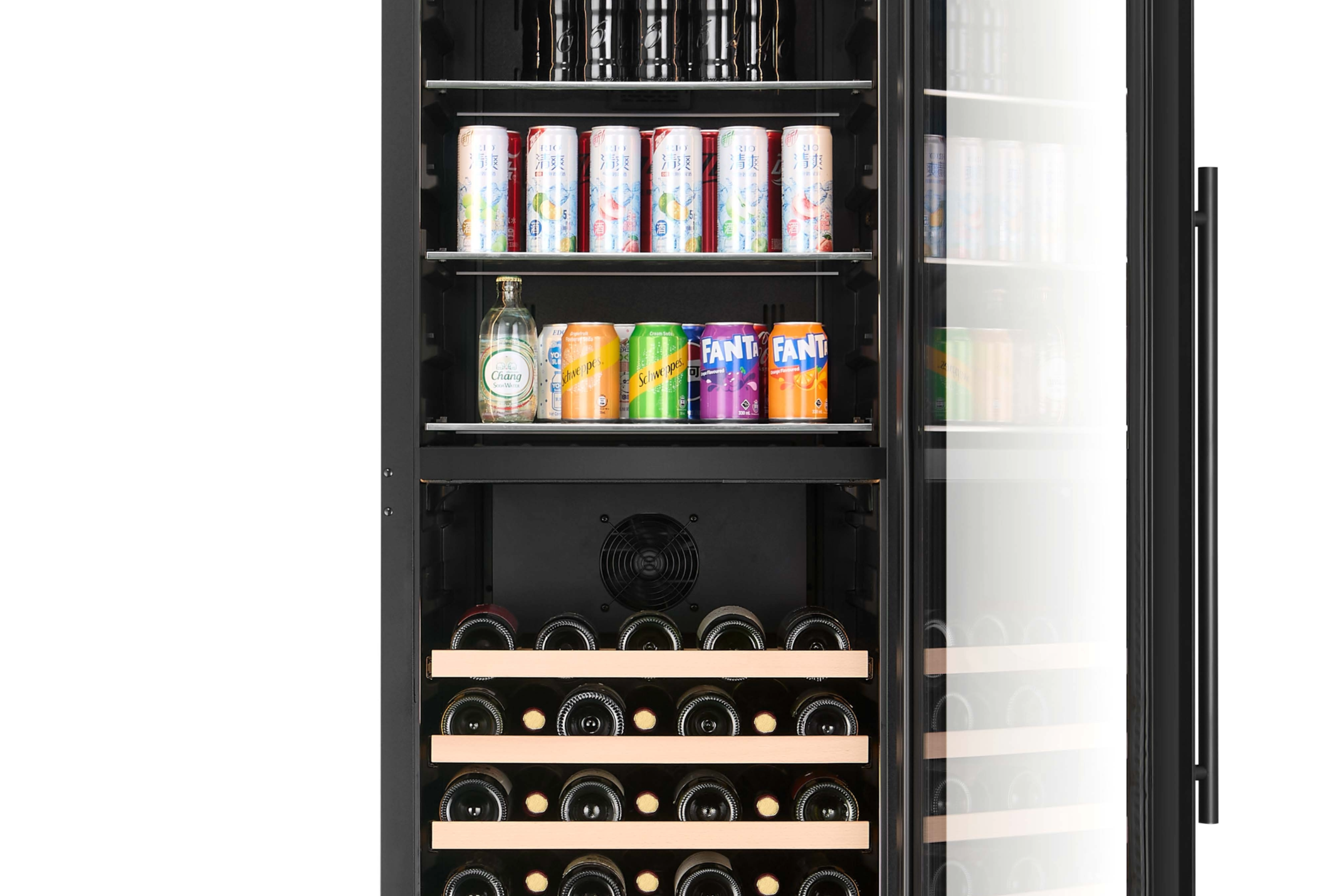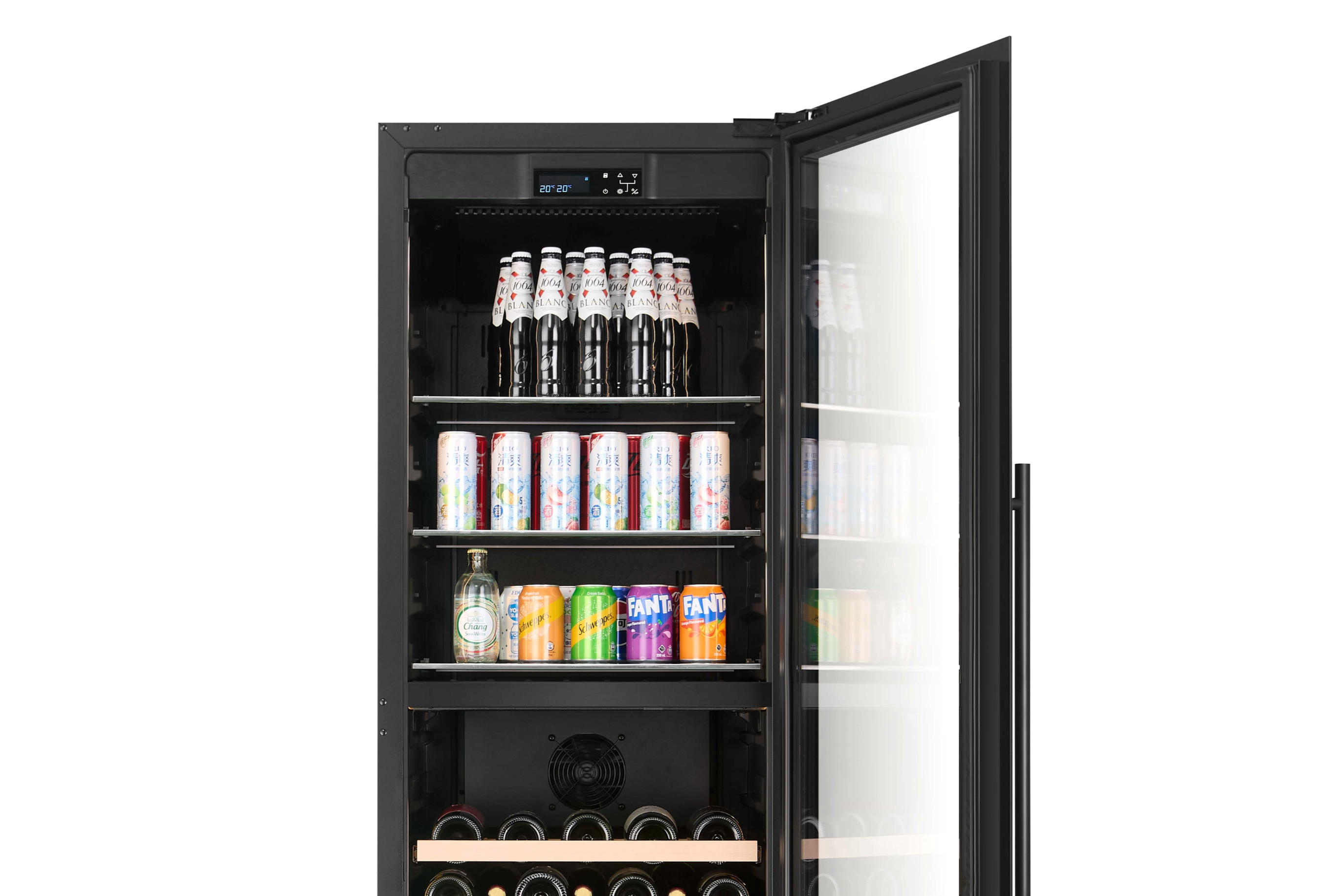 Our beverage centres accommodate a mix of beverage cans/bottles, as well as larger, wider wine bottles up to 85mm in diameter, without sacrificing space or limiting shelf storage to standard Bordeaux bottles. The top section features sturdy glass shelving which can be adjusted (height-wise).