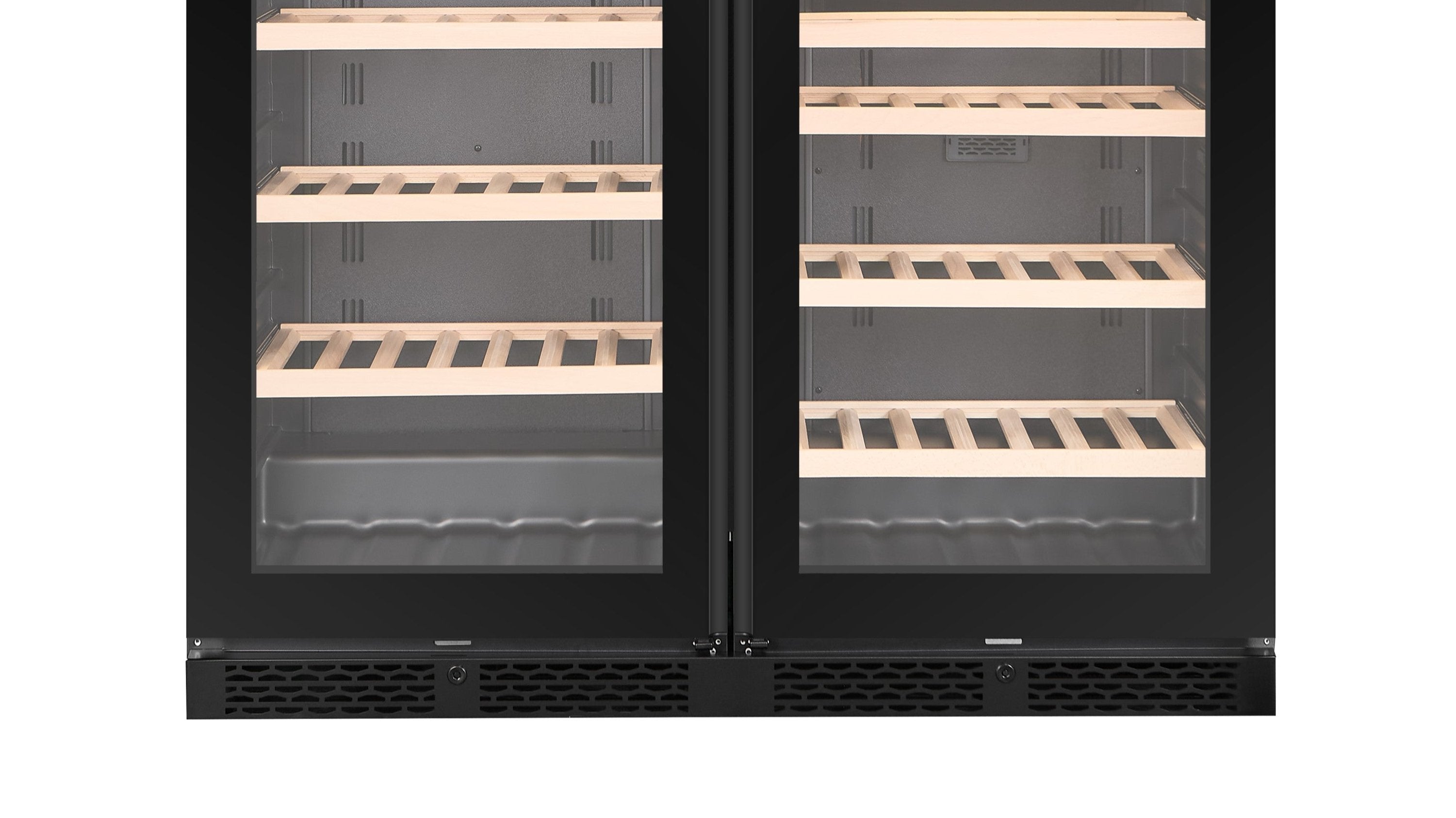 El lado del vino de la combinación permite un fácil acceso a las botellas con rieles telescópicos extensibles que se extraen hasta el 80% del recorrido, las botellas se colocan cuello con cuello para lograr la máxima capacidad de almacenamiento y son adecuadas tanto para botellas de Burdeos como de Borgoña.