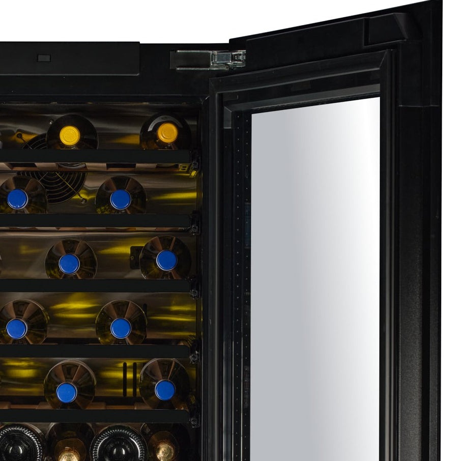 Has built-in HI & LOW temperature alarms for wine preservation, with audible and visible alerts in case of malfunction. Also includes an open door alarm to ensure the door is always closed properly.