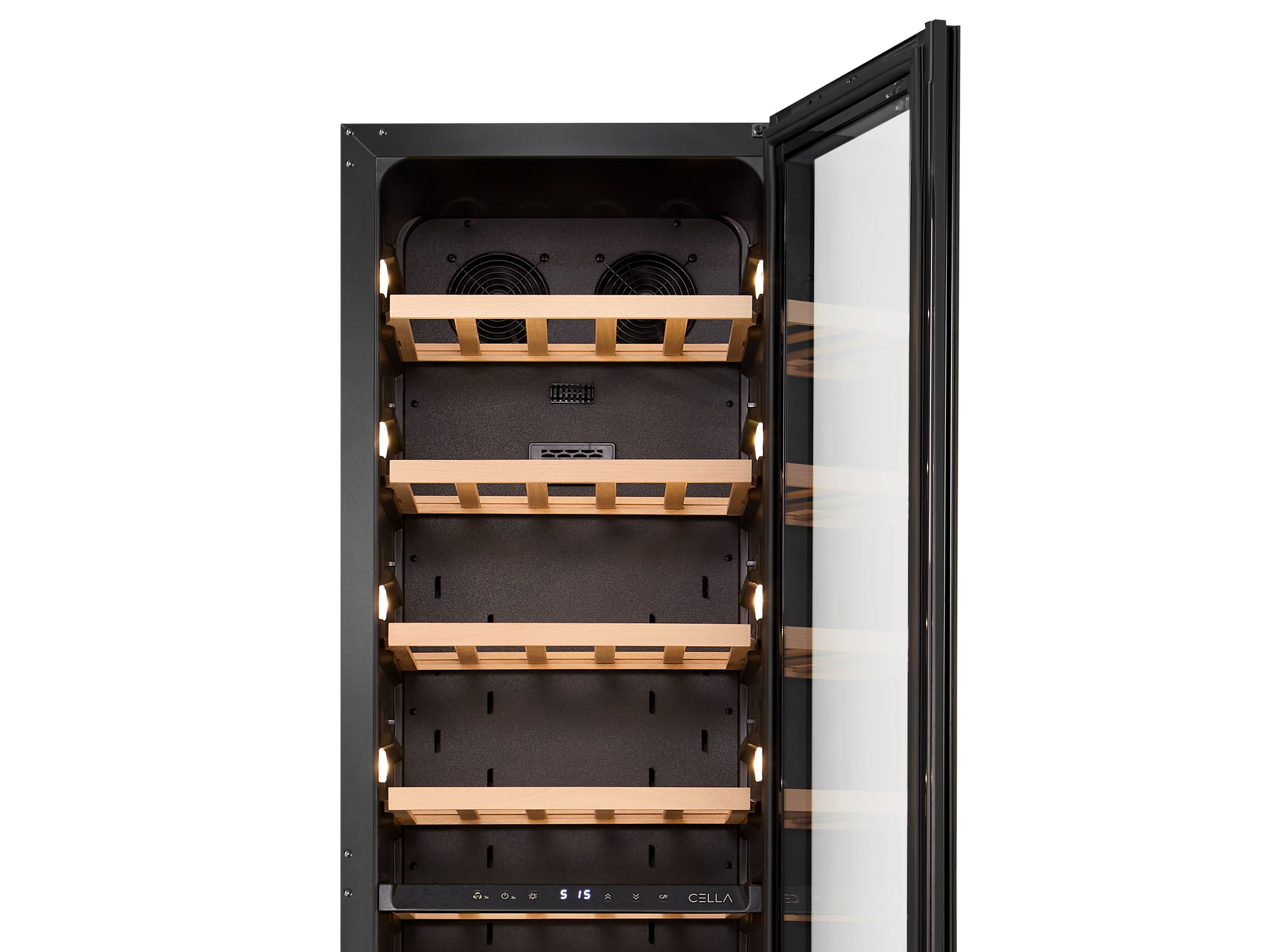 La gama WINE CELLA está diseñada específicamente para el vino. Nuestros productos están disponibles en una variedad de tamaños para satisfacer distintas alturas y profundidades según la capacidad que necesite. El modelo W82S-BLACK tiene un tamaño completamente único con una profundidad reducida de tan solo 480 mm.