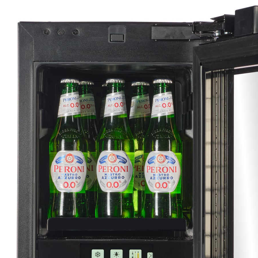 TFT-BV18B-TO - 300mm wide - Push 2 Open Beverage Fridge - 51L - Black Glass