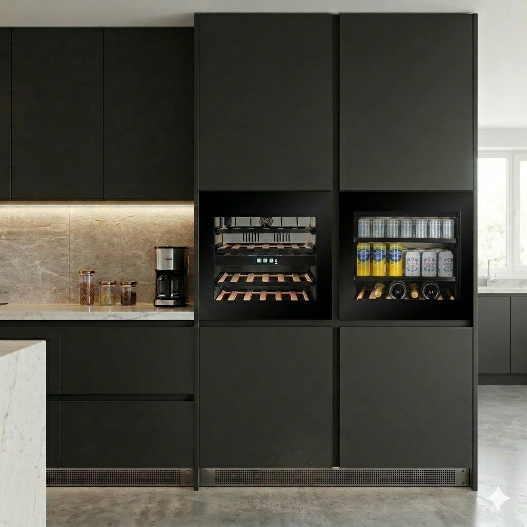 Available in wine or beverage formats allowing you to create a mini home bar from integrated appliances - a first for the kitchen market.