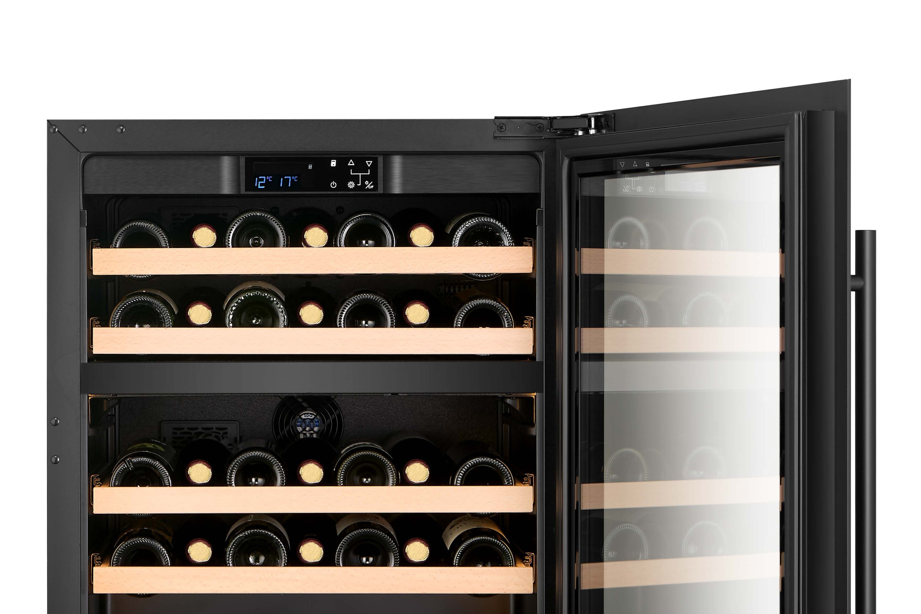 Nuestros refrigeradores para vinos tienen un amplio rango de temperatura de funcionamiento de 5 a 20 °C, las unidades de zona dual pueden operar ambas zonas entre esta temperatura también debido a los evaporadores duales.
